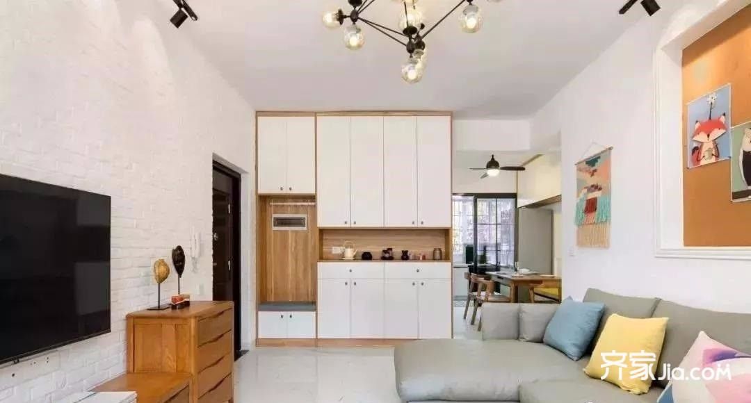 为了使客厅显得开阔,因此并没有吊顶,只装了主灯和两组轨道射灯作为辅助光源