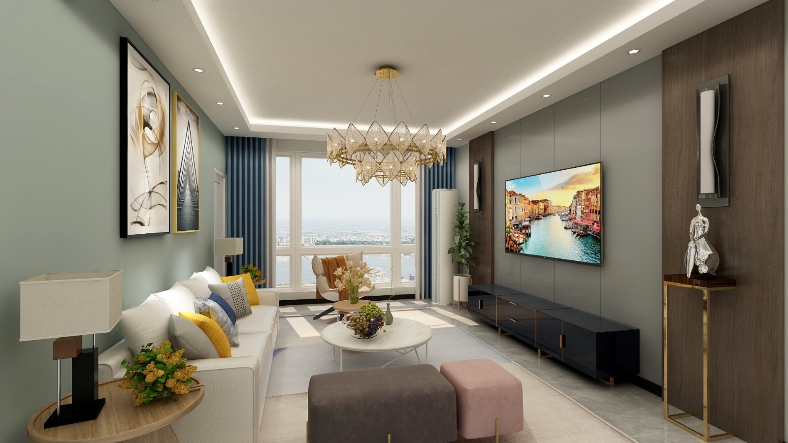业主对空间的色调与电视背景墙提出了特别的要求,庄重又不失活力。