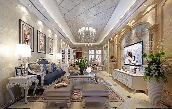 这个空间跟客厅顶面直接连接在一起,突出欧式的通透敞亮感。