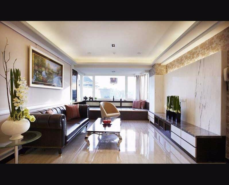 客厅空间宽敞,硬装上是追求贵气优雅,不做复杂的样式,点线面三面形成一个整体,用色偏沉稳,装饰上古典大气,还有些许葱郁。