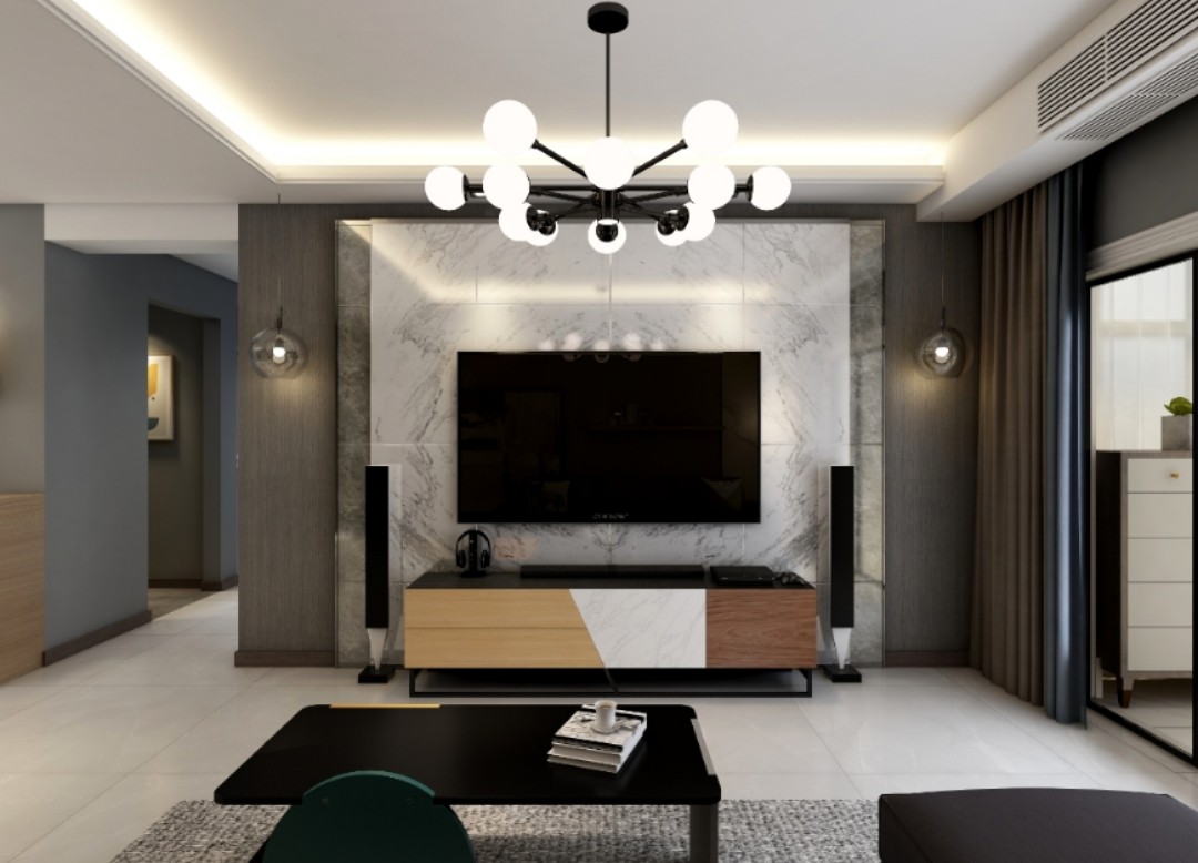 木褐色的墙板、灰色的沙发等,构成了本案莫兰迪体系的阵营,以低饱和度的“高冷”姿态