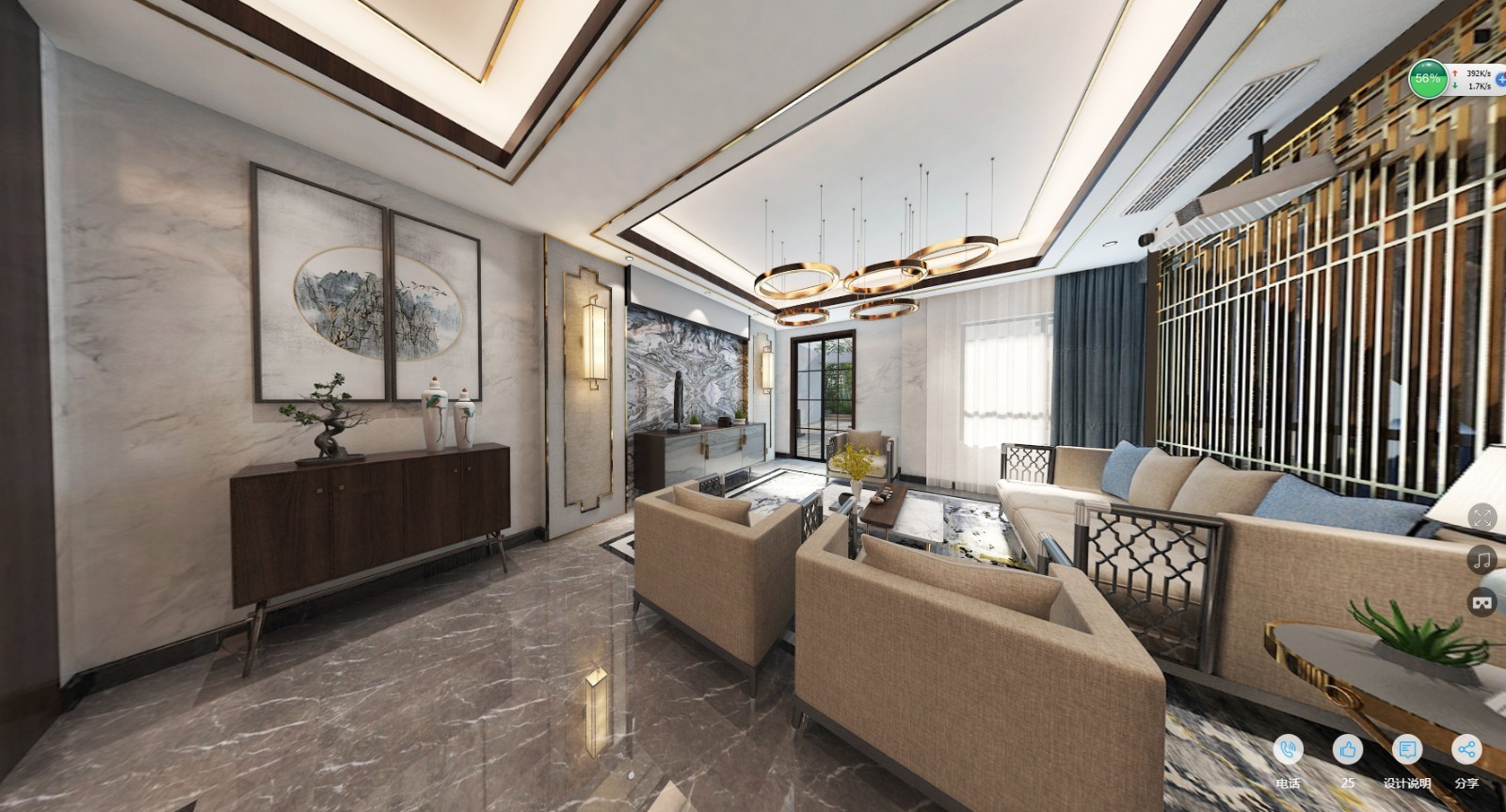 新中式风格 整体采用石材 金属线条