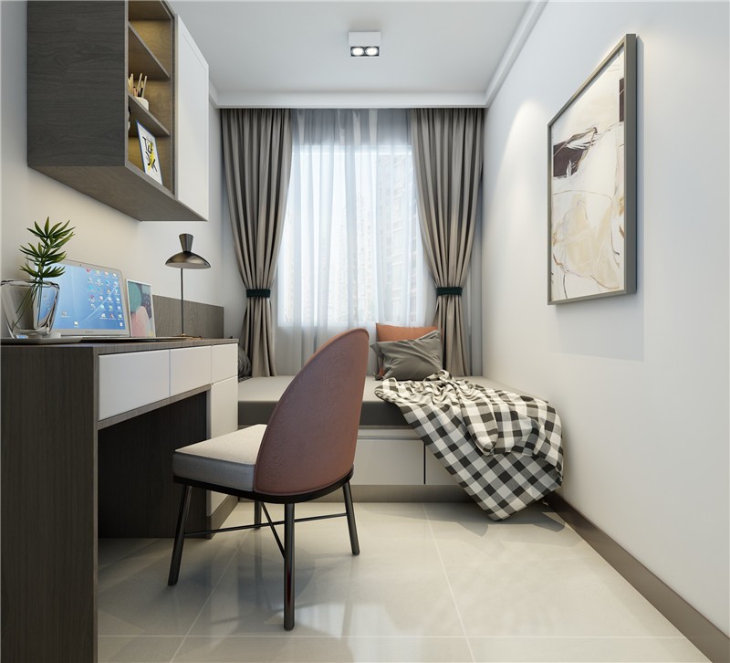 次卧整体空间较小,以榻榻米形式定制,可以收纳足够多的物品。次卧的空间色调,以及木纹选取,配合着整个房屋的感觉走。