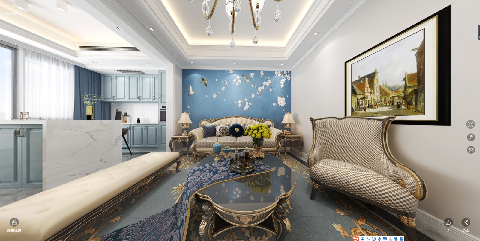 大海深蓝的沙发背景,让人做在家里就可以联想到诗与远方。