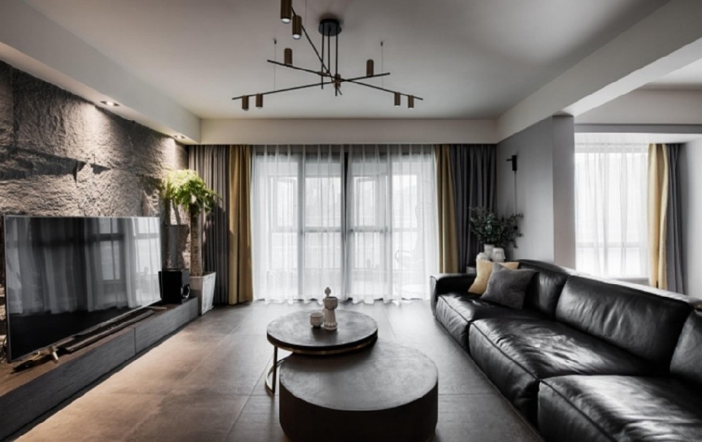 客厅呈黑白灰色调,作为整个客厅的亮点——沙发背景墙,设计师用特殊材料做呈现,还原并强调空间内材质交织的魅力,引入质朴天然石材,与良好的自然光照相映,平衡着整个空间内的家具造型,同时也平衡着理性的生活方式,并满足感性、大胆、创新的生活体验。