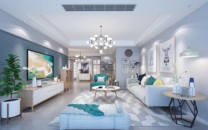 黑白灰的主色调赋予了高贵的孔雀蓝,温馨不失华丽。