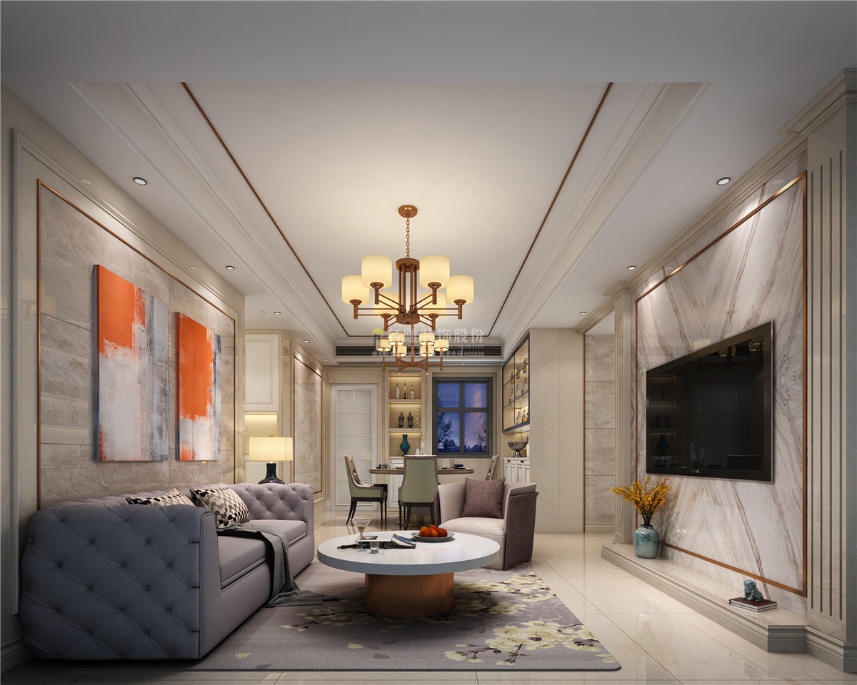 在简化了线条的石材,少了些繁琐,多了些时尚,背景的护墙板也没有太多浮夸的造型,看上去更加精美舒适,顶面内嵌的金属条又增添了几分精致感