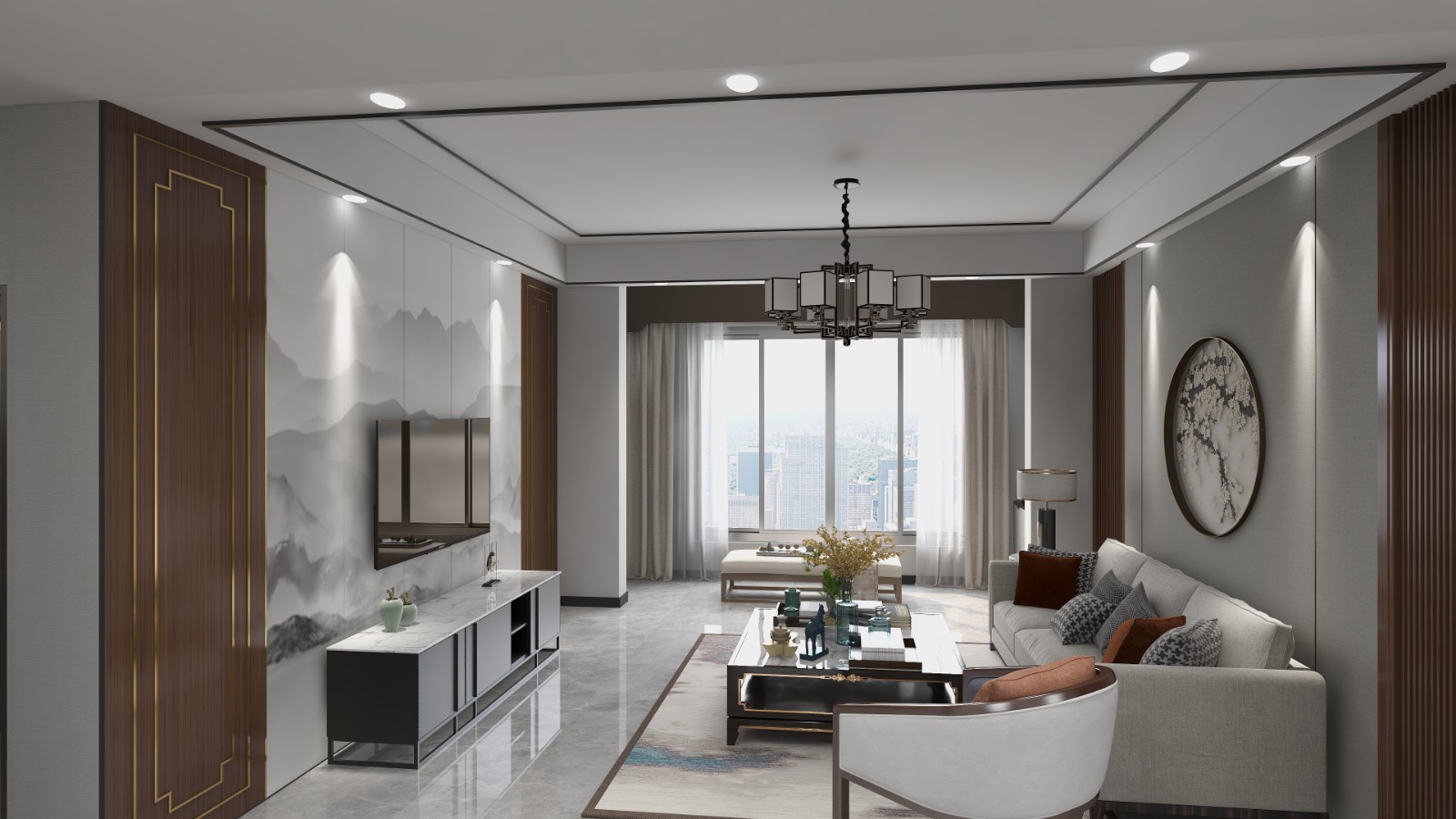 新中式风格的设计理念也体现出了功能性的设计,新中式风格的家具大多数采用实木型对材料,能够满足整体实用的功能性。