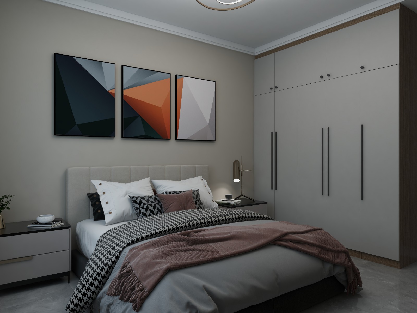色彩的搭配,以浅灰色做衣柜的门板,整体看起来大方整洁!