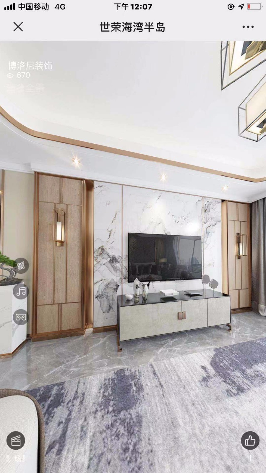瓷砖大板结合玫瑰金不锈钢包边及墙布装饰,彰显简约的现代风