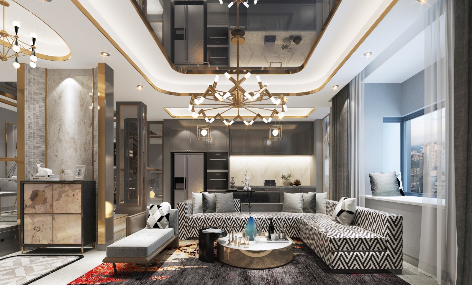 当设计师刚进到房间里的时候,感觉这个空间和业主的气质截然相反。 我们的业主是一位90后电商达人,钟爱一切和时尚相关的领域,包括室内空间的感觉。 同时她也是一个可爱的两岁小男孩的妈妈。 设计师在原始不居中进行了大量的拆改,将原始的错层地台维度改小,将厨房墙体拆除,中西厨分割,即扩大了客厅的空间视野,又让主妇在烘焙的同时可以观察到宝宝的动向。