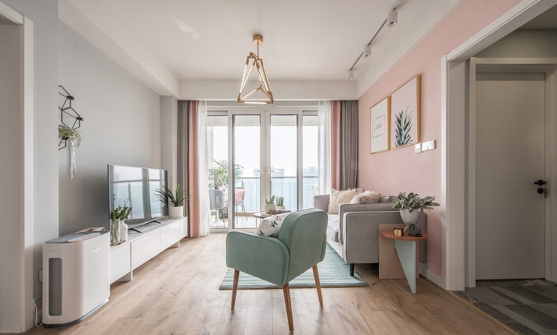 儿童房采用了粉色的大色块,加上简约的绿植挂画和一株粽竹,清新而自然。