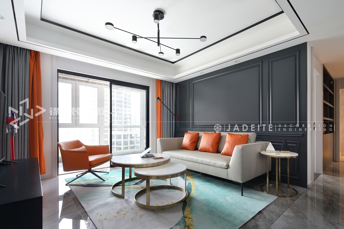 在黑白灰的基调上面,融入了橙色的跳色。而橙色贯穿了整个空间,达到了***统一。同时一些镜面的处理让空间安静下来的同时,让视觉空间扩大。有效的提升了层次感。