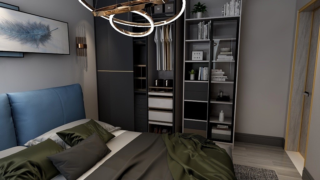 卧室采用深色系为主体,营造低调深沉的视觉感。