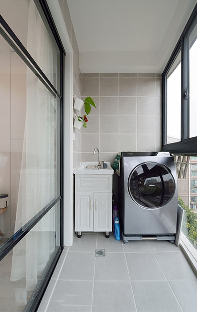 阳台设计浴室柜和洗衣机合理利用每一个空间。