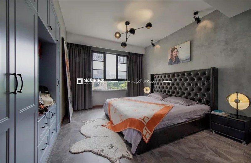 工业风的摆放是随意的,于是在客厅与书房都没有设置大量的收纳空间,考虑到「收纳」的需求,设计师将***一块通天柜安放在了主卧。