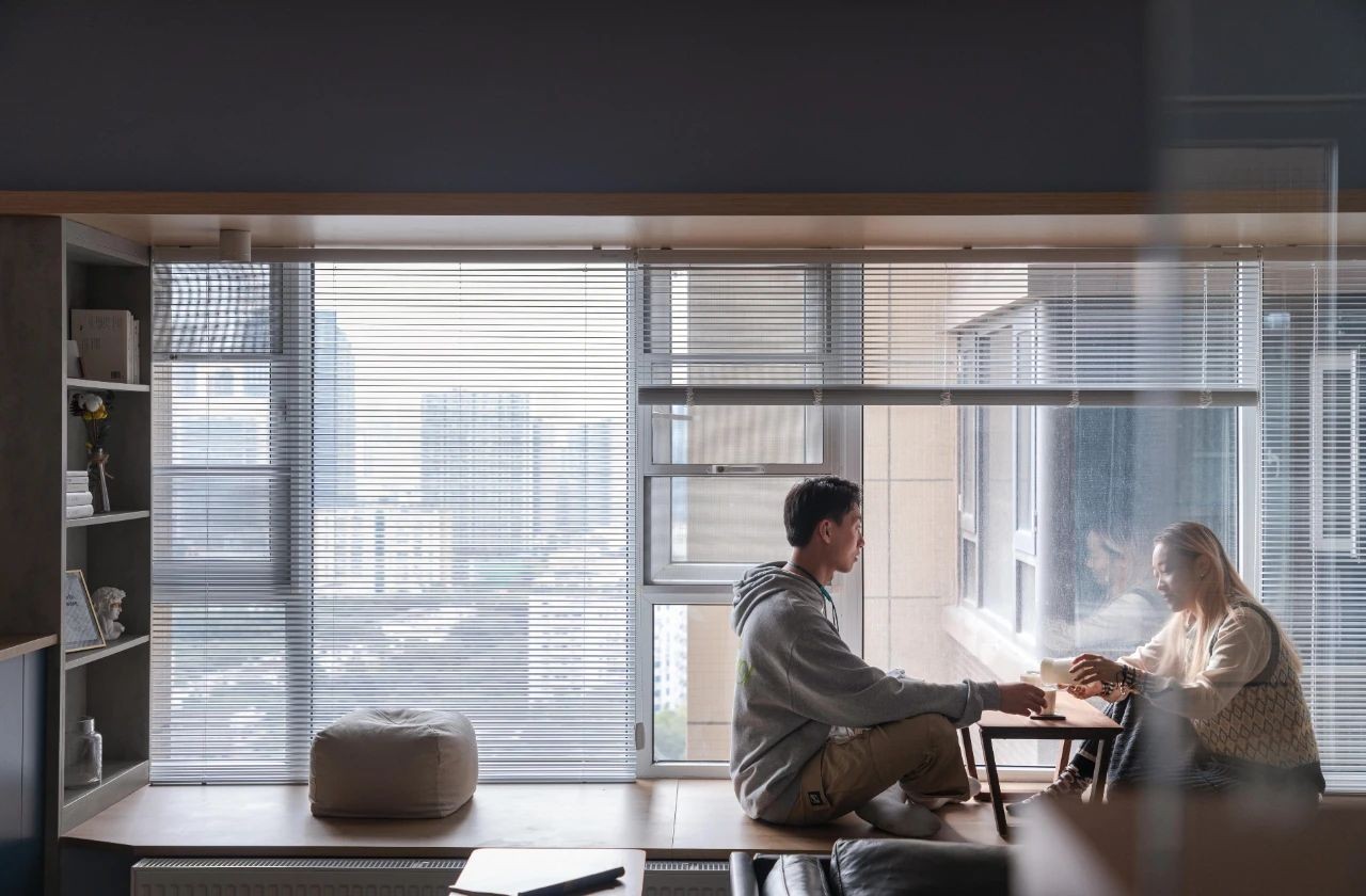 将客厅和书房非承重墙改成玻璃+悬浮电视墙,提升采光,实现整个空间的空气对流。