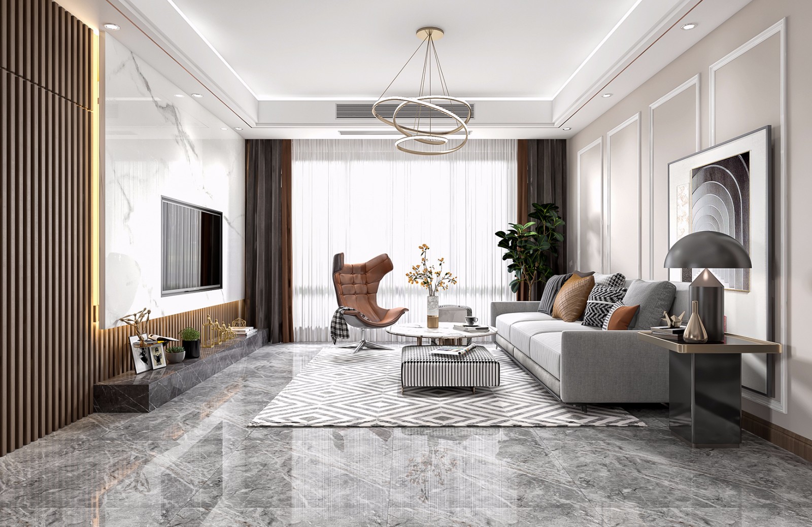 瓷砖衬托大理石的肌理,与流行的皮革碰撞,显得时尚又轻盈。