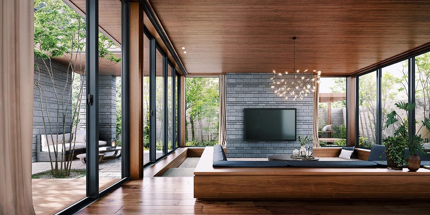 多点阳光绿色,家才更温暖。 开放式的空间,让室内外景观相结合。 设计师重点考虑了室内外空间的转换,植入大小不一的花园,光线的渗透效果。