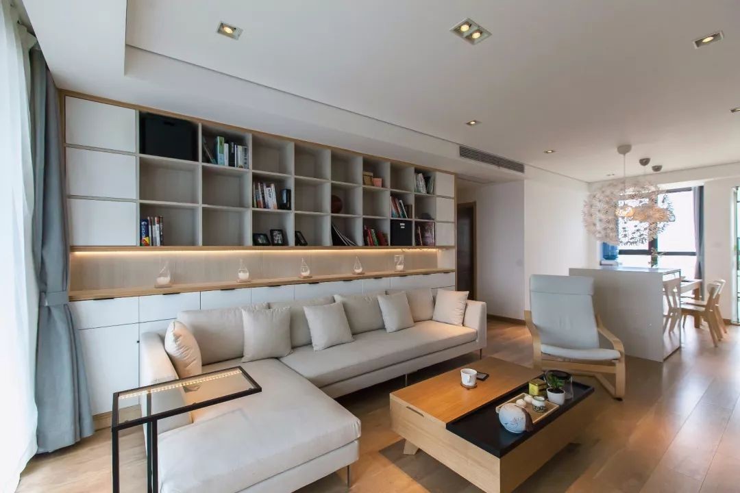 一套面积大概是180平米极简MUJI风,整个房子以现代时尚的格局,,营造出一个轻松惬意的居住氛围,让人悠闲自在。