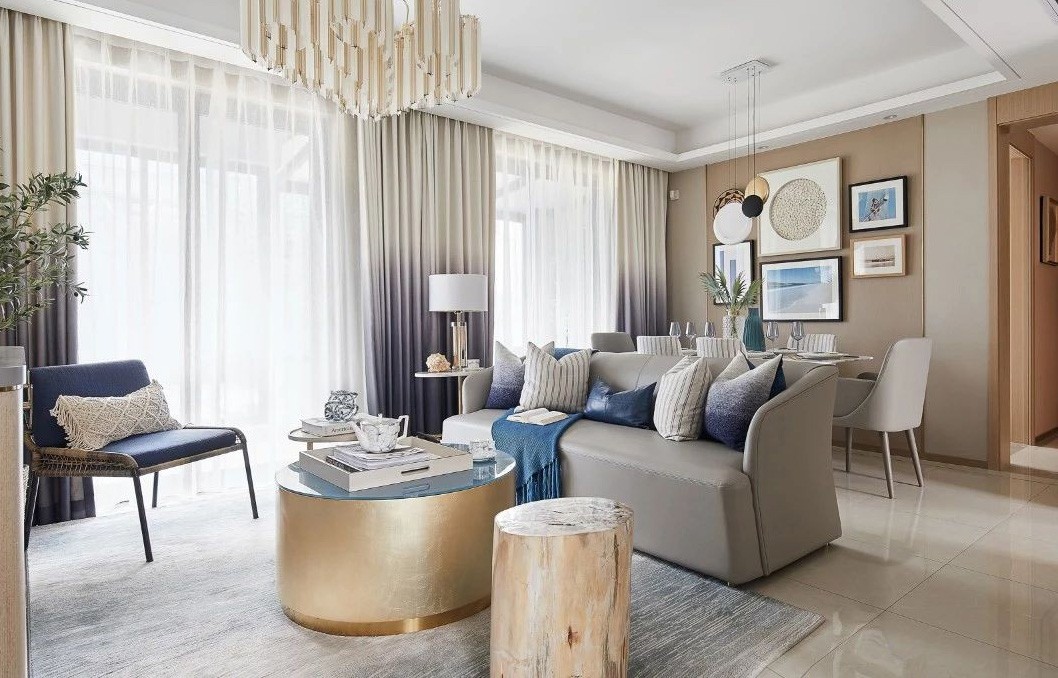 大量装饰挂画,蓝与蓝一道沉醉,家的格局由此展现。
