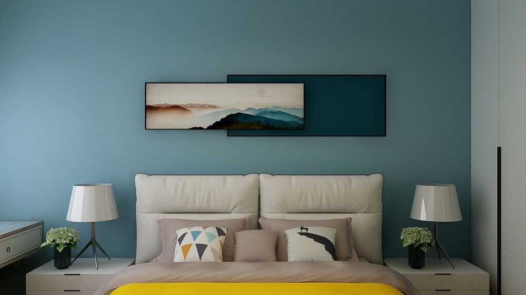 简约的直线条会给人一种利落清爽的感觉,软装家居在灰蓝墙面漆的映照下更加舒适。