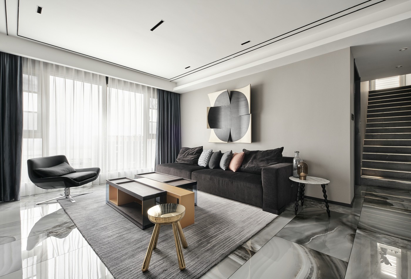 后现代装修采用大量的铁制构件、陶艺品、花梗等具有曲线和非对称线条的物品做装饰,在视觉效果上来说,别具线条美
