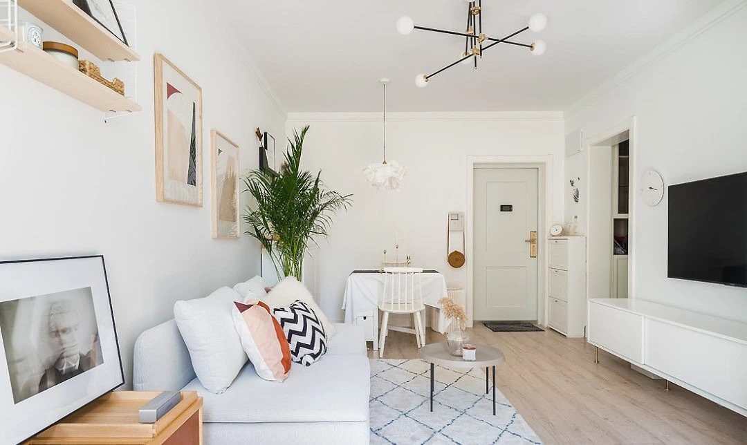 简单又温暖的小窝,简单的软装色彩,客厅大空间的留白增加了视野,麻雀虽小但五脏俱全。