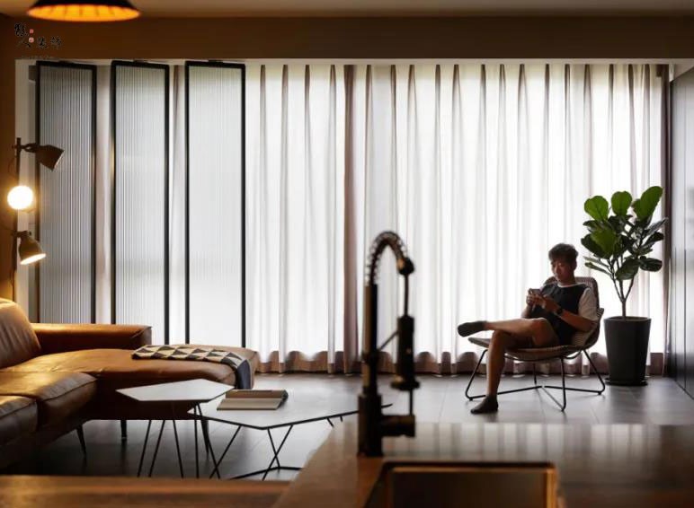 今天给大家分享的是一套130㎡三室公寓装修案例,原始户型相对方正,三开间朝南+双阳台,通风采光良好,但是屋主喜欢低饱和度,不喜欢很亮的灯光,色调上以咖色为主搭配黑与白,营造安静有质感的居家氛围,客餐厅和原阳台的互通互借,弱化晾晒功能,将阳台纳入公共区,提高空间利用率。