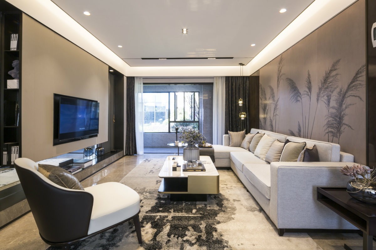 通过艺术的手笔调动起居者对于美好生活最丰富而立体的感知。芦苇硬包背景墙澄净清雅