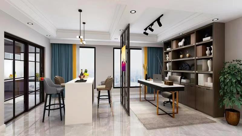 巧用隔断,显示出开放的书房办公区,温馨舒适,家的味道