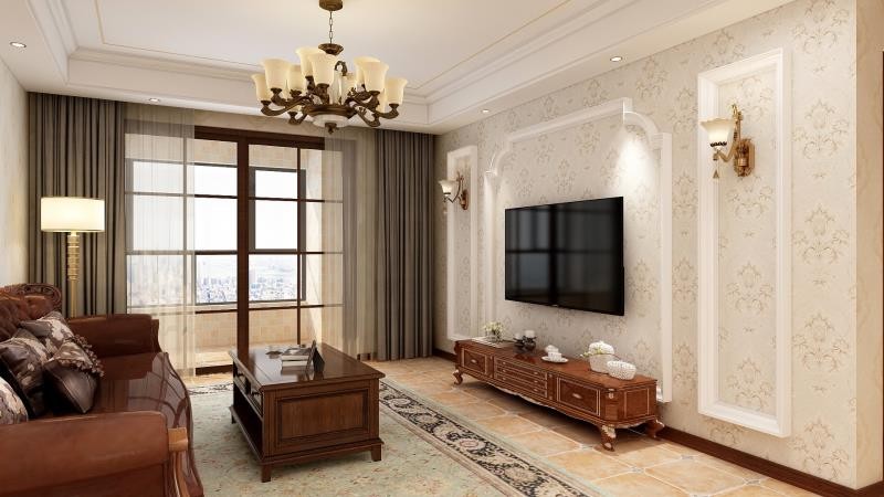 客厅以美式风格为基调,电视背景墙做了个简单的石膏造型。