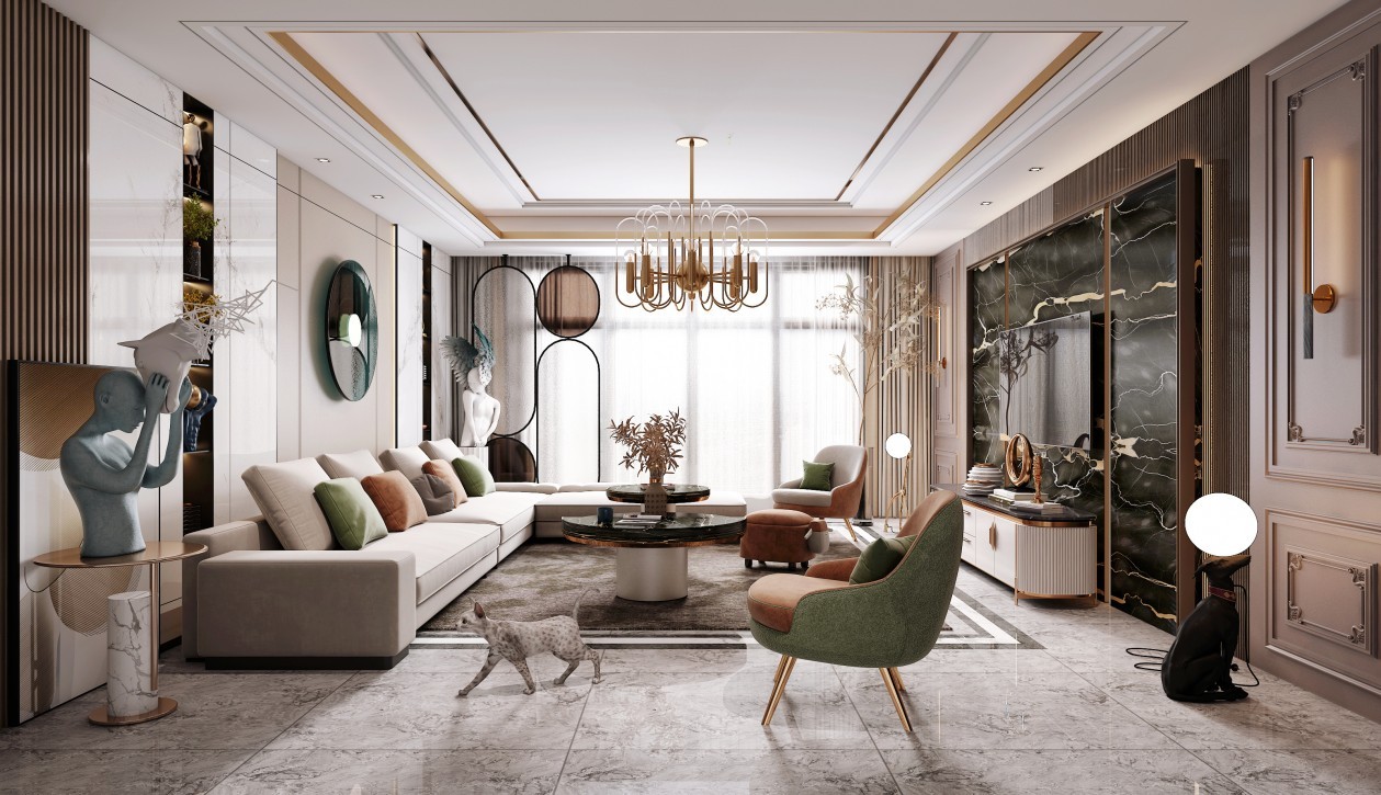 一窗月,一枕眠,柳庭风静,客厅内那一整面的玻璃落地窗,引入了室外春夏秋冬的宜人美景
