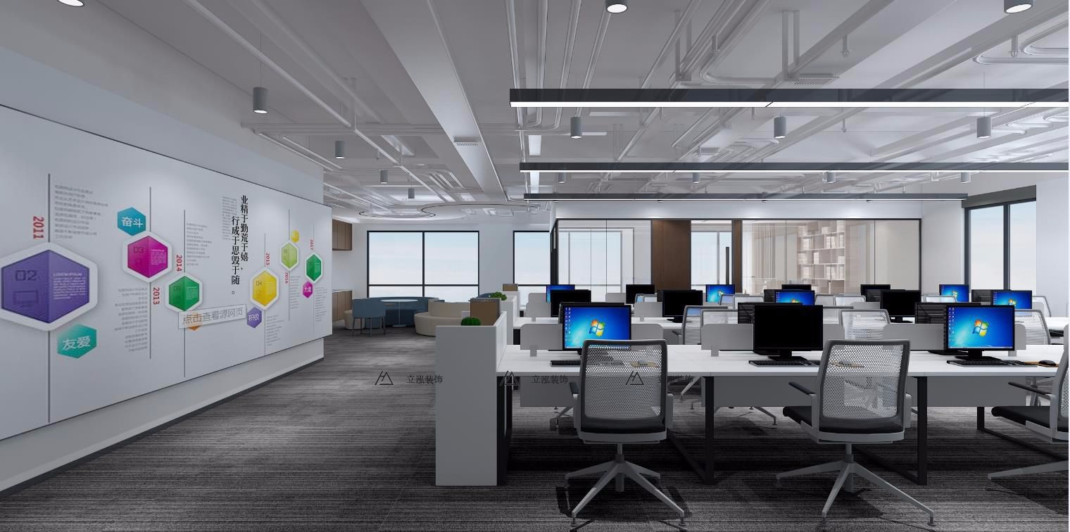 以白色为基调的公共办公区干净整洁~