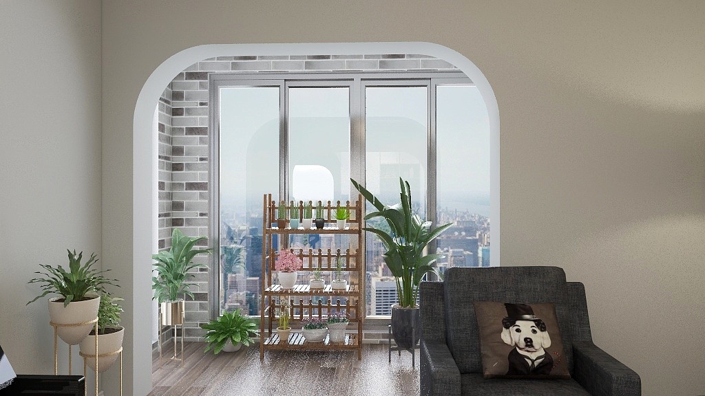 避免吊顶,所有的门都是一个拱形。南阳台是一个休闲阳台