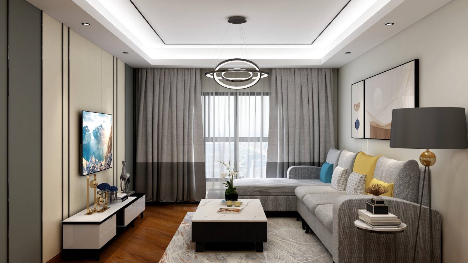 结合主人的意见,采用了L型的沙发 视觉上更舒适,增加了空间感