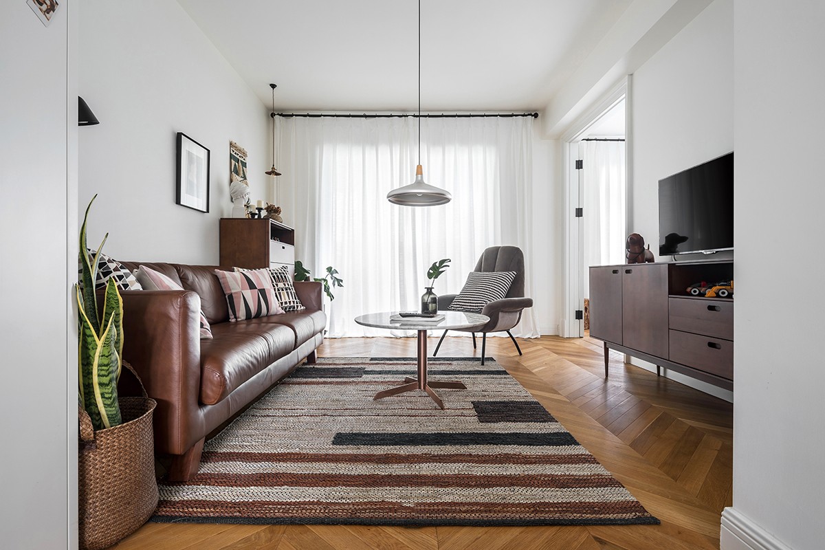 整个空间的材质和色彩搭配,木质,绿植,皮艺和配饰灯具的铁艺。让整个空间层次感颇为丰富,充满艺术气息的设计,带着一些对生活的美好遐想和描述。
