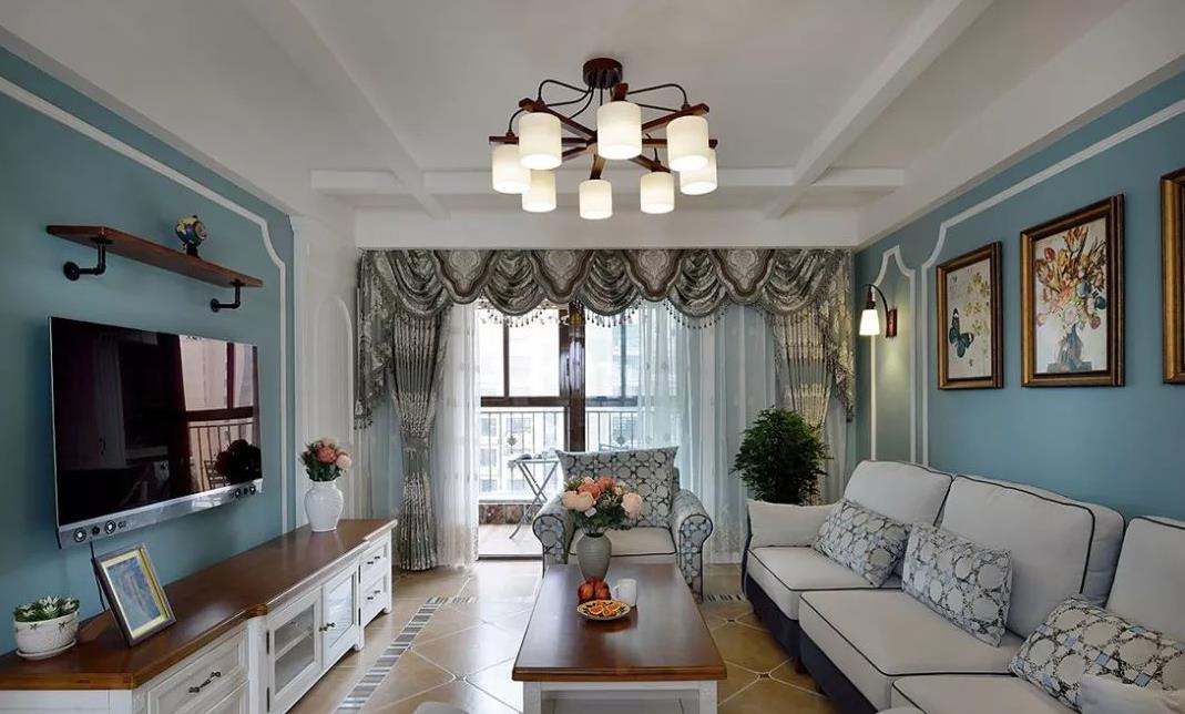 客厅顶部的吊顶简洁而又好看,让空间充满了立体感,又和沙发背景墙上的石膏线造型相互呼应,让空间更加统一