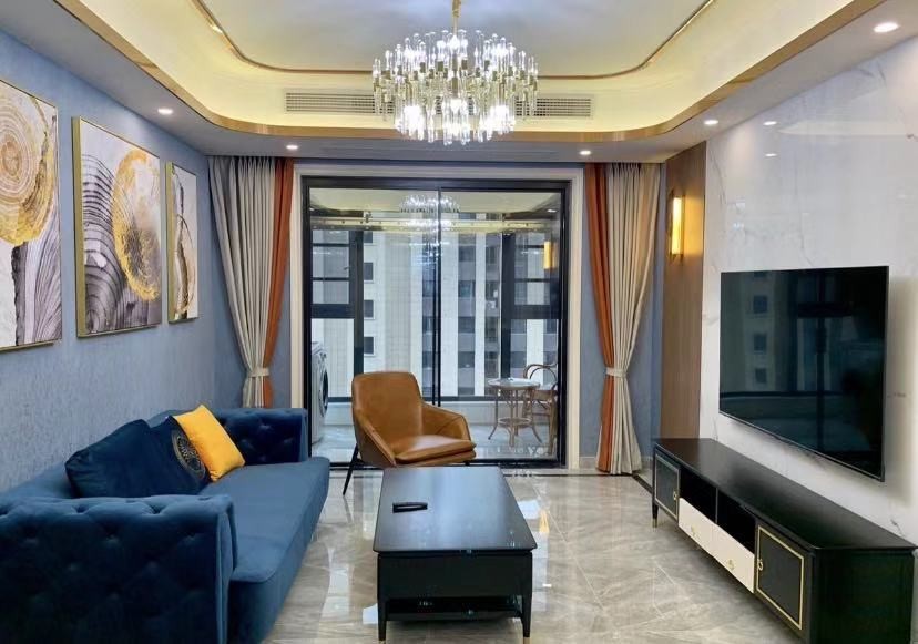 客厅纳入阳台作休闲一角,原木色地面搭配无主灯极简顶面,让客厅更加明亮简洁