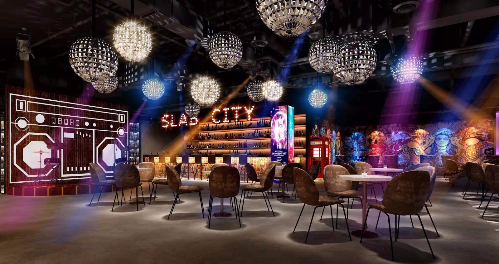 原有户型属于毛坯状态,酒吧的配色以暗色调为主,辅助以懒散的灯光,营造一种慵懒却又能散发出荷尔蒙的氛围。