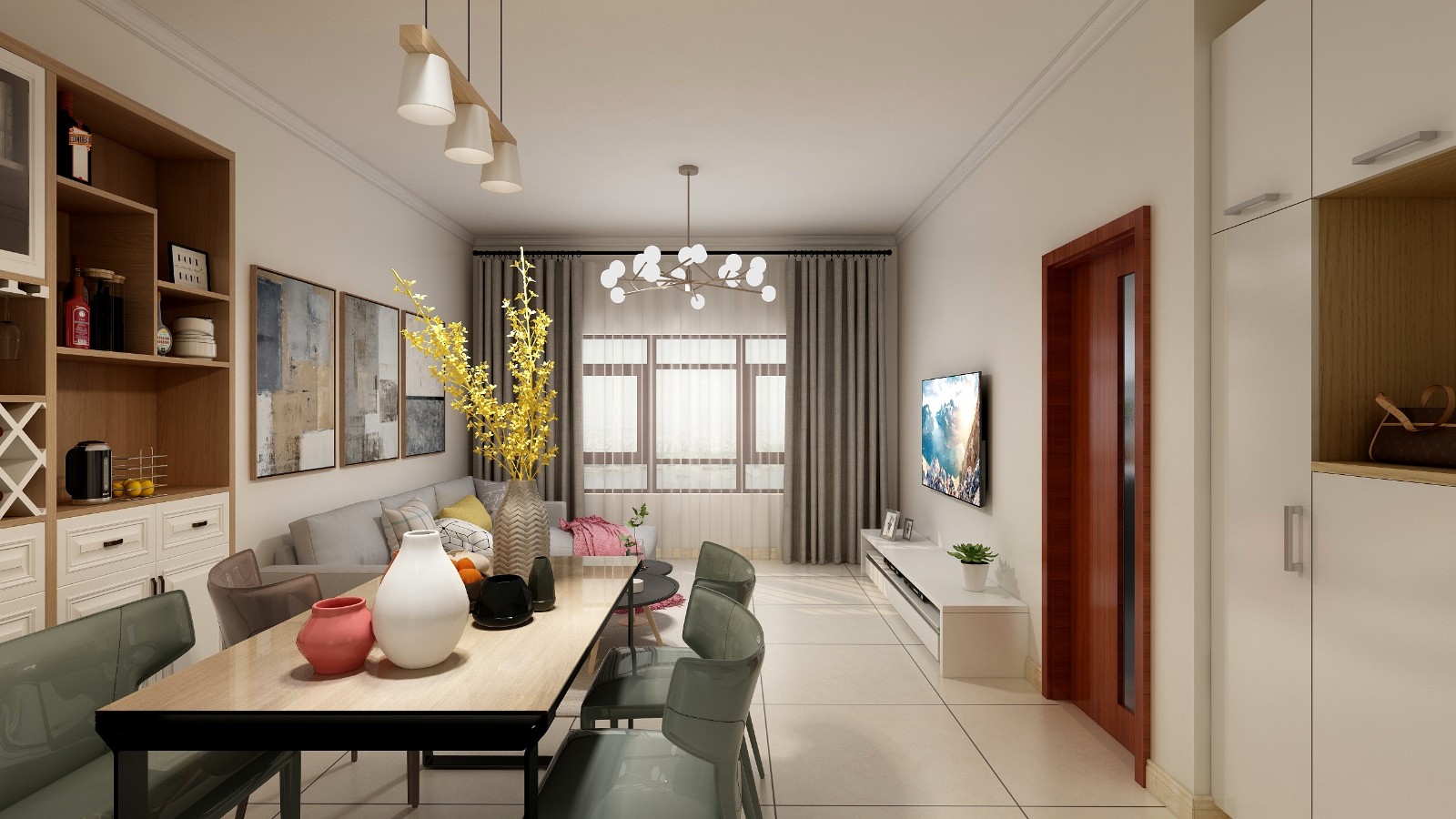 在硬装上选择原木和白色为主色调,增加视觉的宽敞和明亮感,辅以低调备受欢迎的脏脏粉,和中性系明度的灰绿色点缀,冷暖结合,营造初恋般的甜蜜质感,让家更加温馨浪漫。
