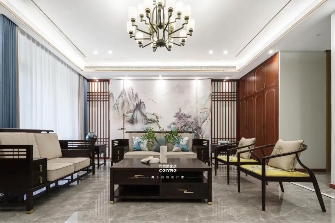 本案脉脉诗意的空间里, 中式山水与传统元素装饰, 经过设计师的解构与重组,焕发新的生命力!
