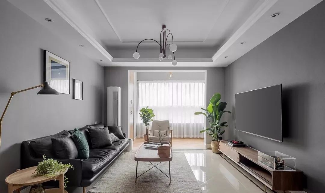 客厅以烟灰色为空间主色调,铺垫优雅沉静的氛围。