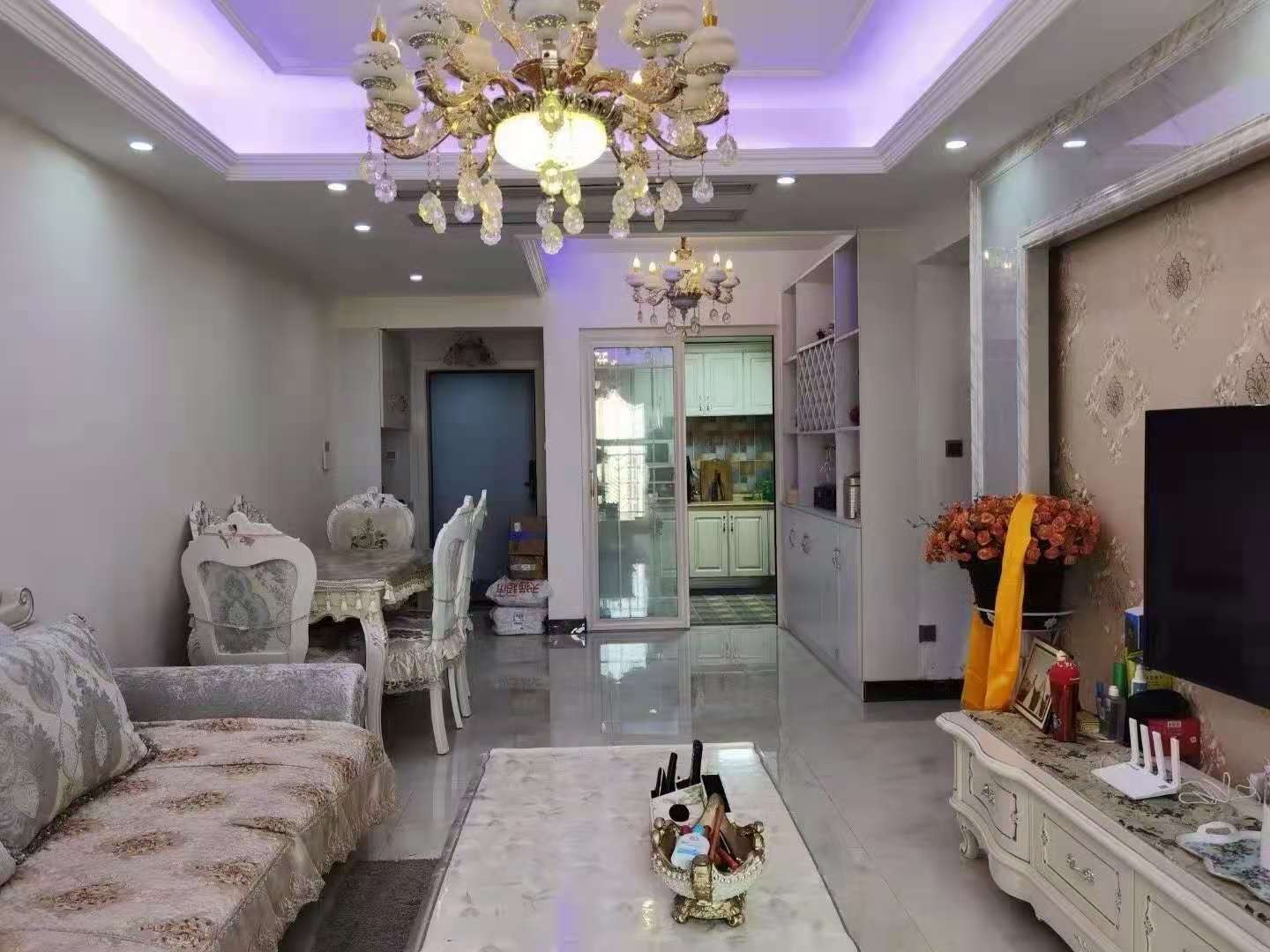 沙发、茶几、电视柜配套,墙体乳胶漆。中央空调设计中间,两边通风。
