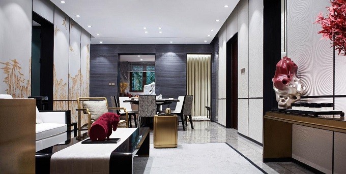 色彩鲜明的颜色,使整个空间活跃有质。让中式元素更添加色彩。凤凰的背景在中古就是代表吉祥的寓意。整体的空间毫无违和感。