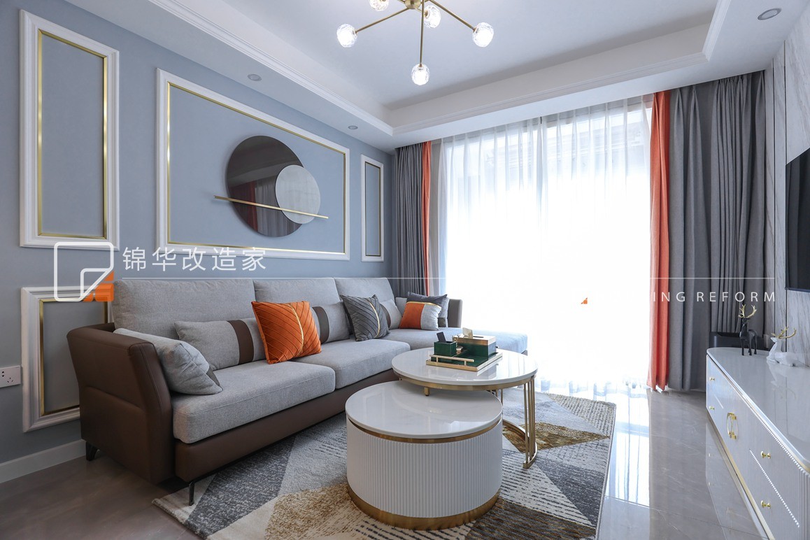 业主东北姑娘,是一个比较讲究生活的现代白领,所以对居住空间比较有自己的想法和要求。经过沟通后,确定风格为美式轻奢,整体色调以灰色为主,橙色点睛,轻奢又时髦。
