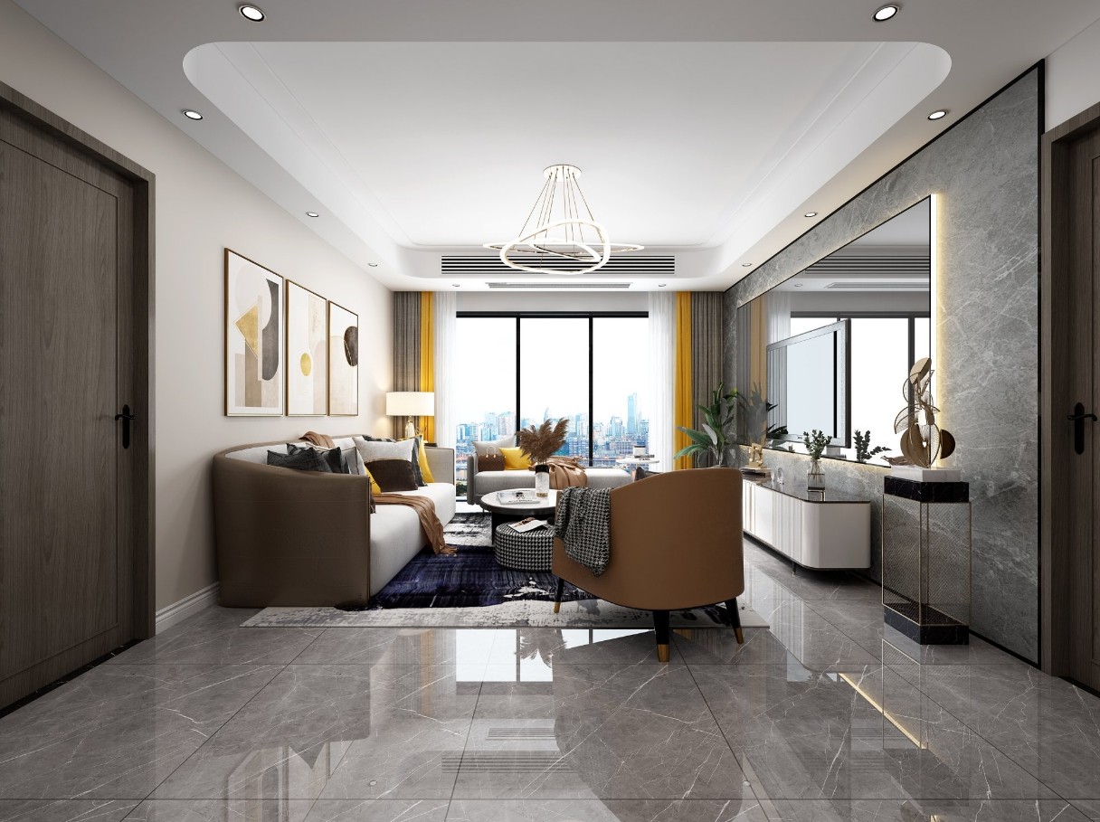这是一套现代轻奢风格的装修案例,整个设计是轻奢中带点极简风格,设计师将外部自然景观引进室内,使室内空间与外部自然环境融为一体。简约却不失品质的家居才是简约舒适的轻奢生活。