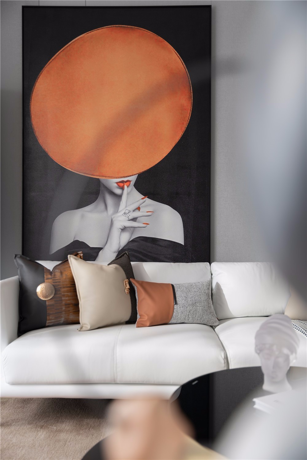 客卧空间整体采用简约不简单的灰色调,局部配以橙色亮色的点缀,和谐整个空间。