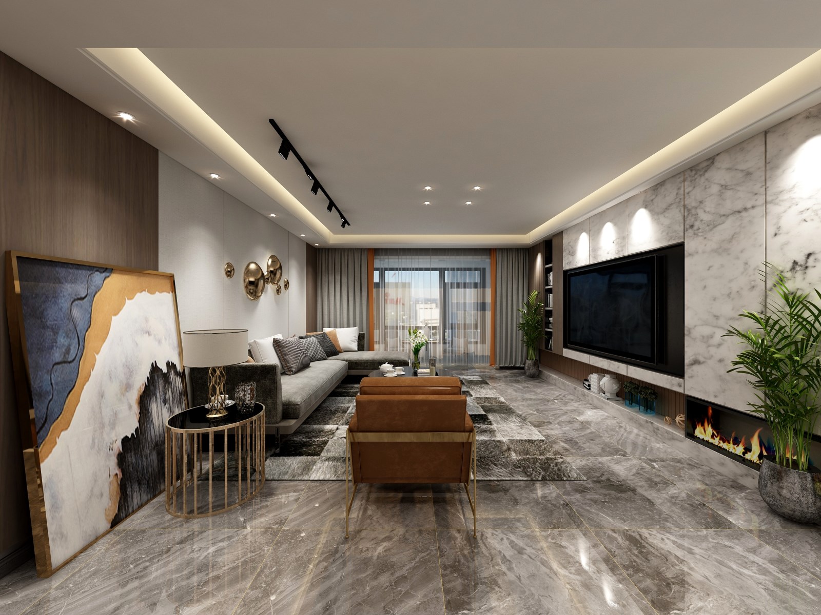 客户采光比较充足、用了比较深的调子,硬装大面积用了冷色调 后期软装调和