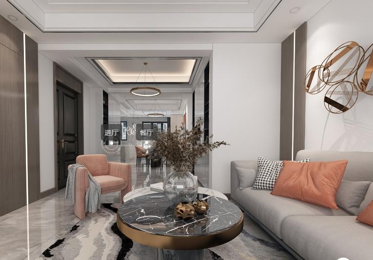 整体空间注重材质的质感 颜色选择比较素雅 再利用暖色的灯光和金属吊灯来提亮整个的空间效果 让人心旷神怡的同时又不会产生视觉疲劳